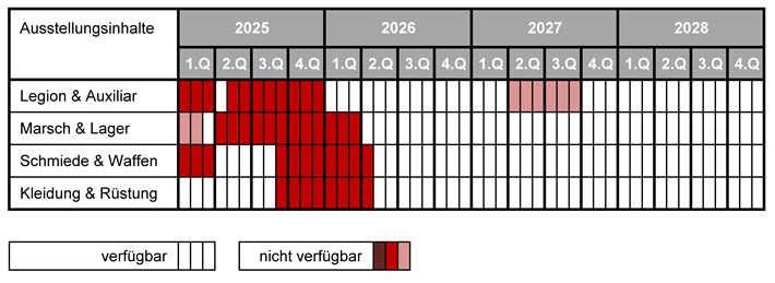 Ausstellung „Armee auf dem Marsch“.  Die großen Dioramen „Marsch“ (Länge: 7,2 Meter) und „Marschlager“ werden von Repliken und lebensgroßen Zeichnungen von Graham Sumner ergänzt. Einige Repliken zu Schuhen, Marschgepäck, Versorgung und Rüstung (zum Anprobieren) machen die Ausstellung auch für Schulklassen und Kinder interessant.